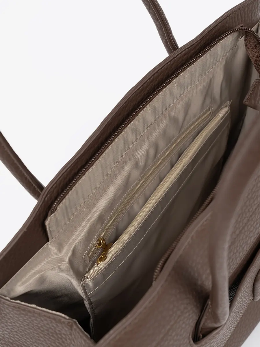 Elevate your everyday look with the Fincen Verra Tote — a modern classic designed for women who value sophistication and functionality. Made from smooth, quality leather in a rich brown tone, this tote blends minimalist design with spacious utility.